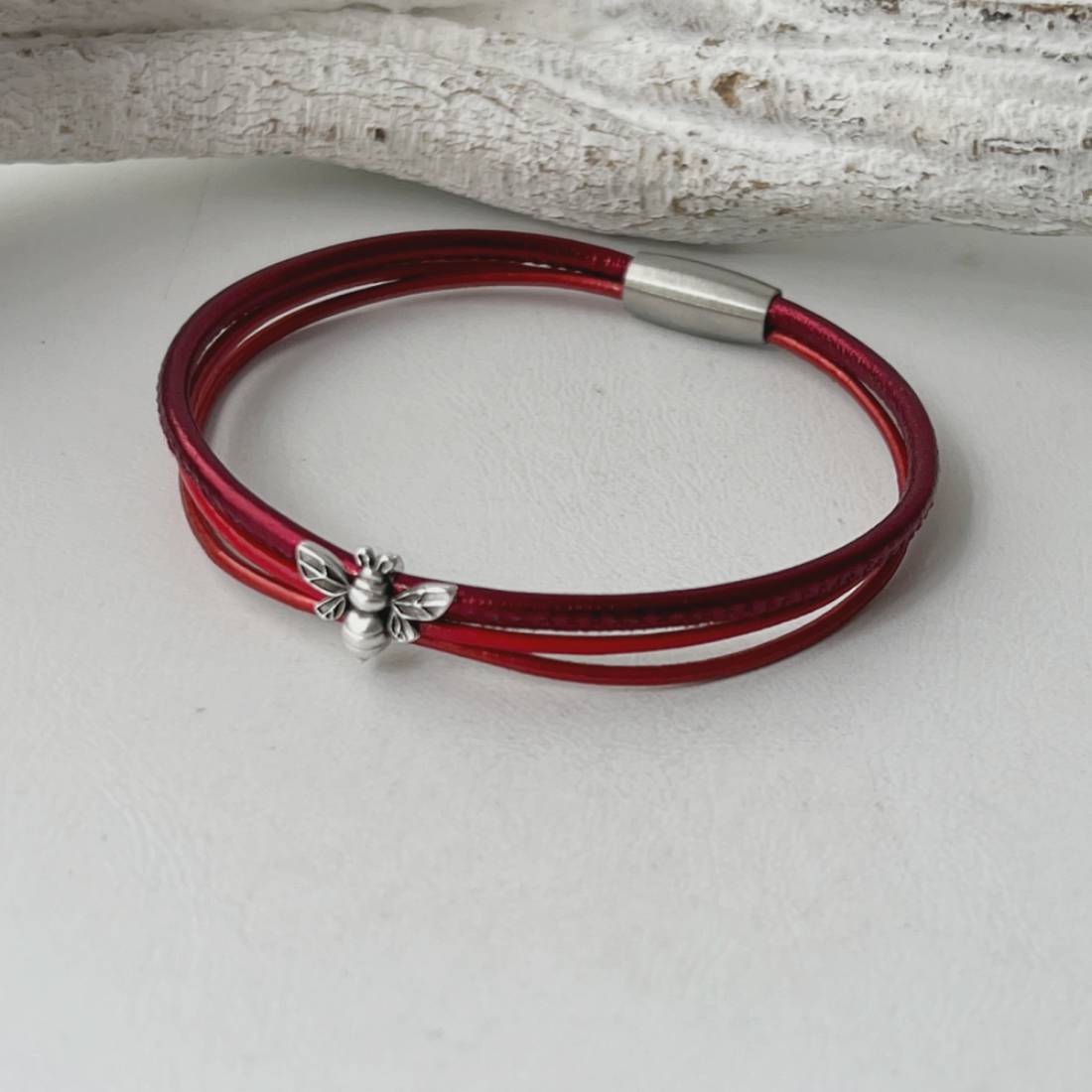 Lederarmband fein Biene rot