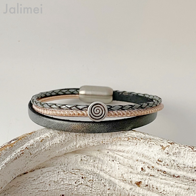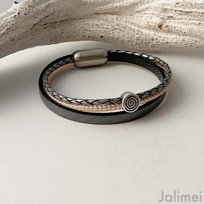 Das Lederarmband mit kleiner Spirale grau lässt sich mit Hilfe eines hochwertigen Edelstahl-Magnetverschlusses leicht an- und ablegen.