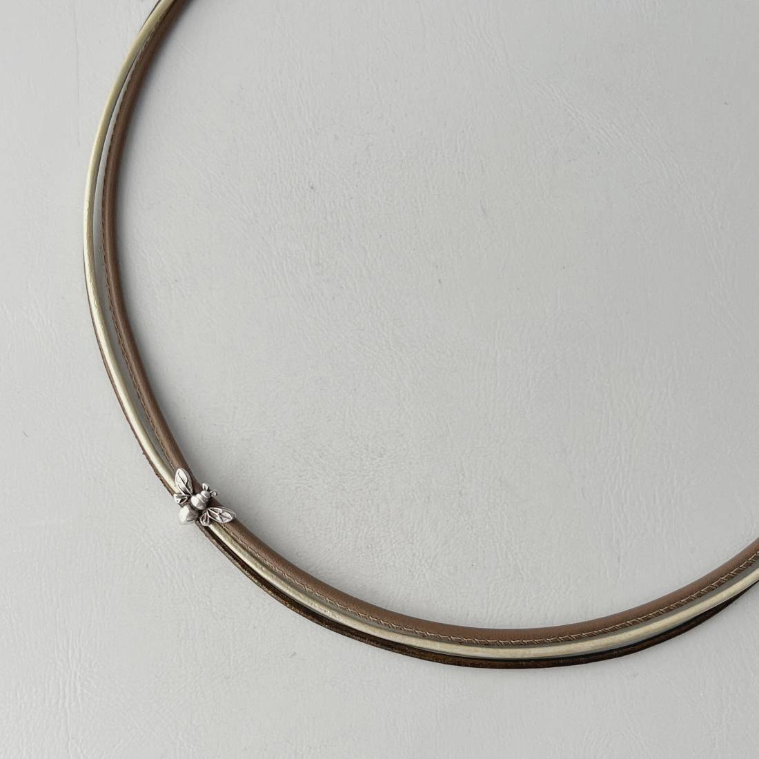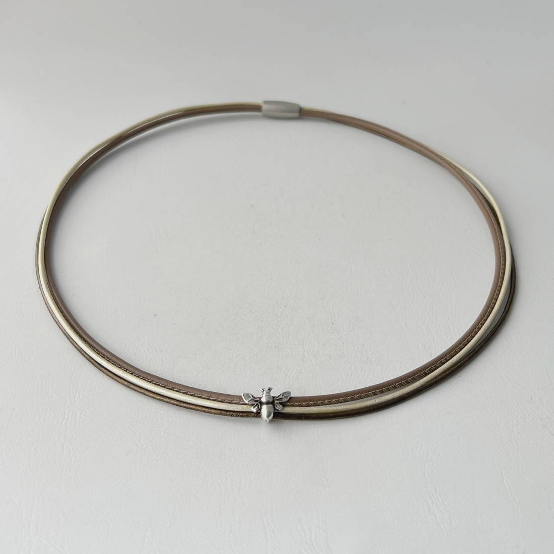 Ledercollier mit Biene taupe