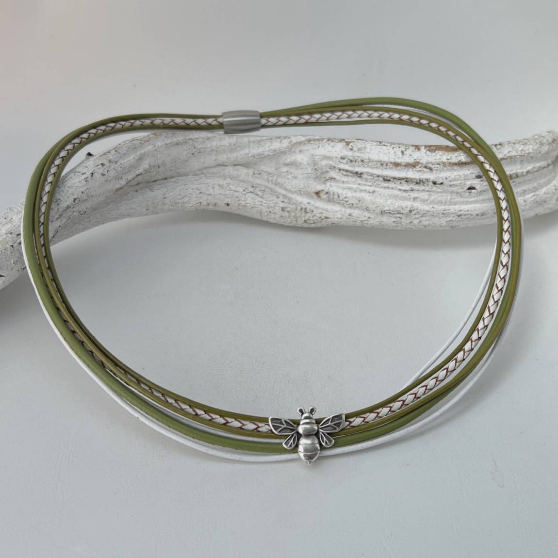 Zu dieser Kette findest Du in meinem Shop auch das passende Armband „Lederarmband mit Biene beere„.