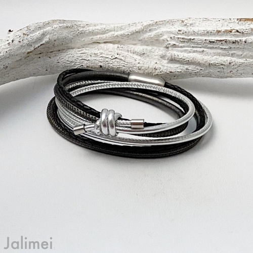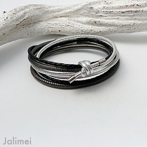 Wickelarmband Knoten schwarz-silber