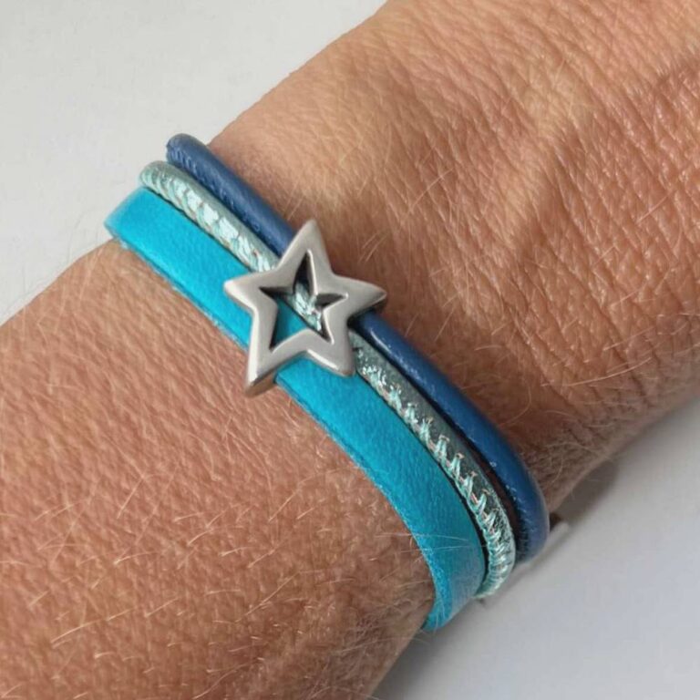 €33,90 Inkl. MwSt. & zzgl. VersandLederarmband offener Stern türkis-blau