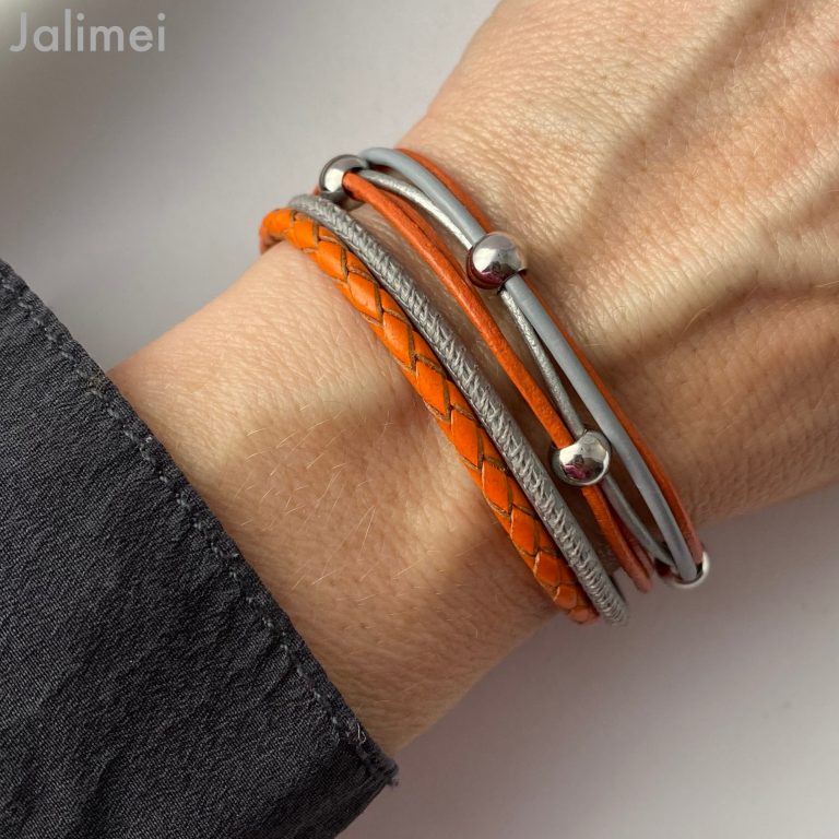 Lederarmband mit Knoten in beige grau
