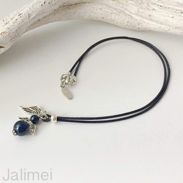 €9,90 Inkl. MwSt. & zzgl. VersandLederbandkette Engelchen dunkelblau
