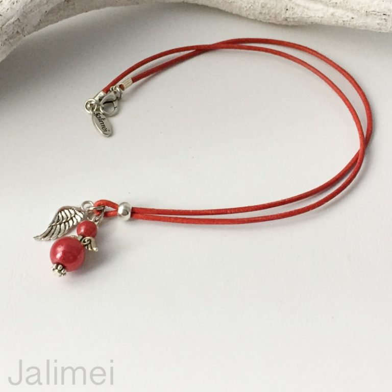 €9,90 Inkl. MwSt. & zzgl. VersandLederbandkette Engelchen rot