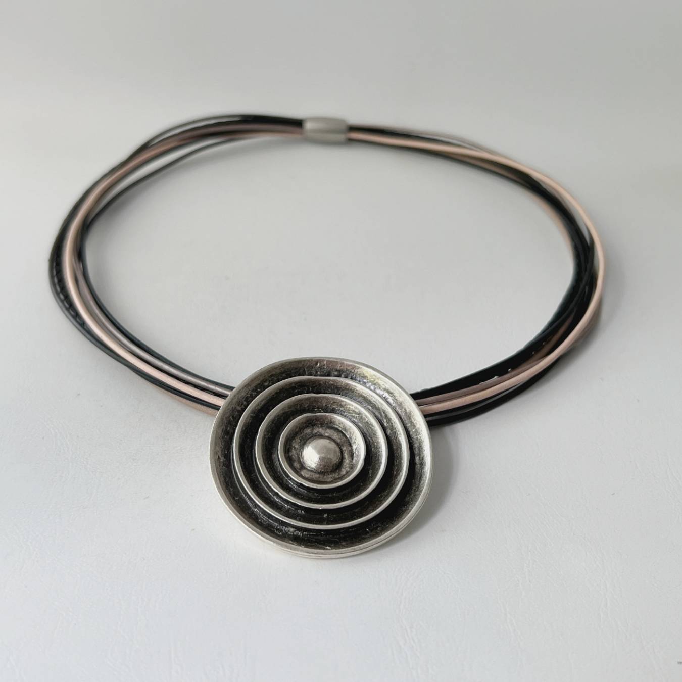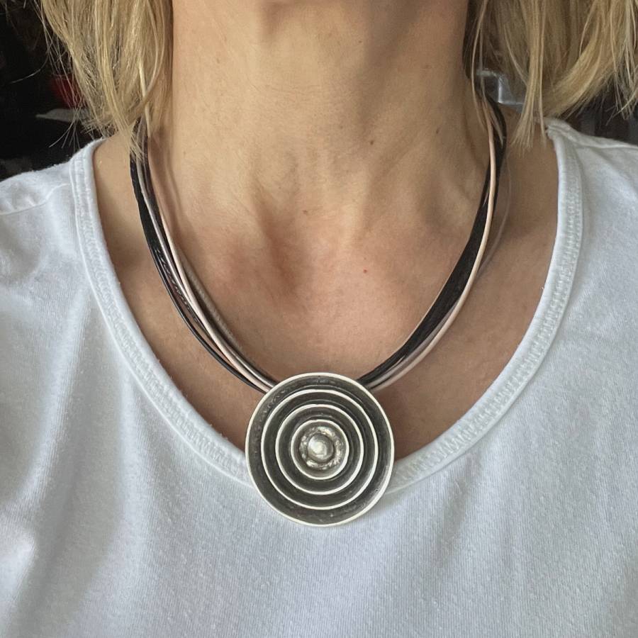 Du wirst dieses Ledercollier mit 3D Anhänger schwarz-beige lieben! Der runde Anhänger (Durchmesser ca. 45 mm) hat eine tolle Optik und kann auch von der Kette genommen werden. Aufgrund der weichen Lederbänder weist die Kette ein angenehmes Tragegefühl auf.